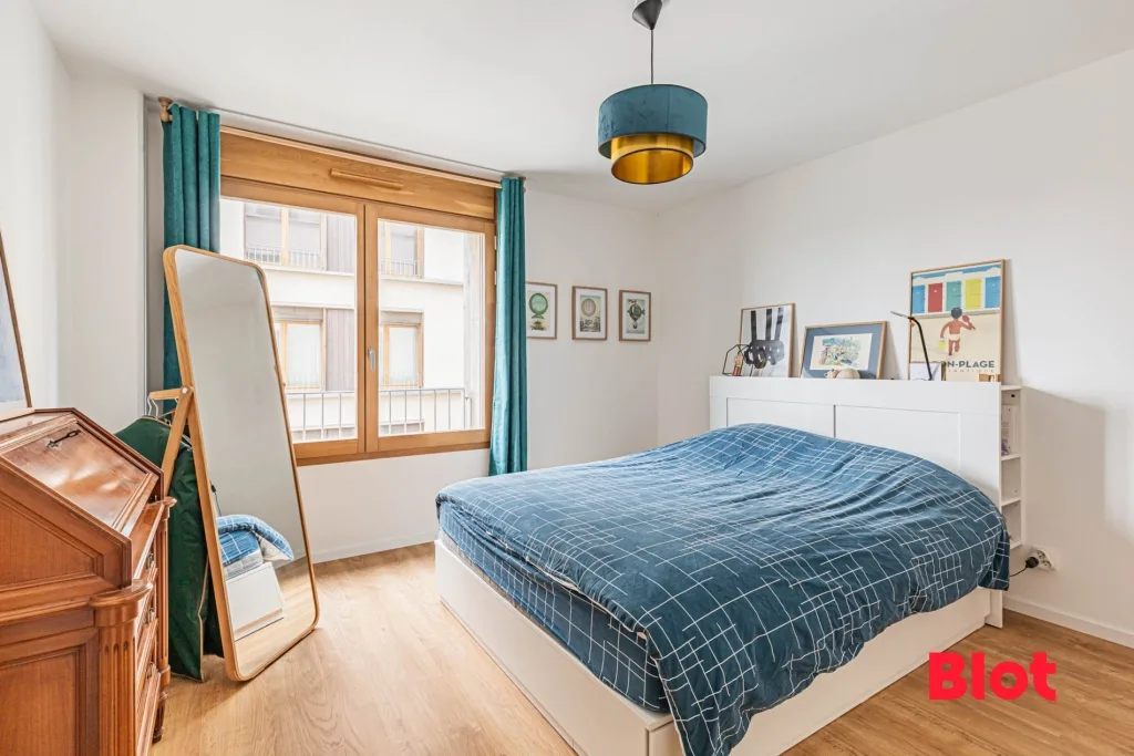 Côté nuit, l'appartement propose une spacieuse chambre de plus de 13 m², une salle d'eau contemporaine ainsi qu'un WC séparé.