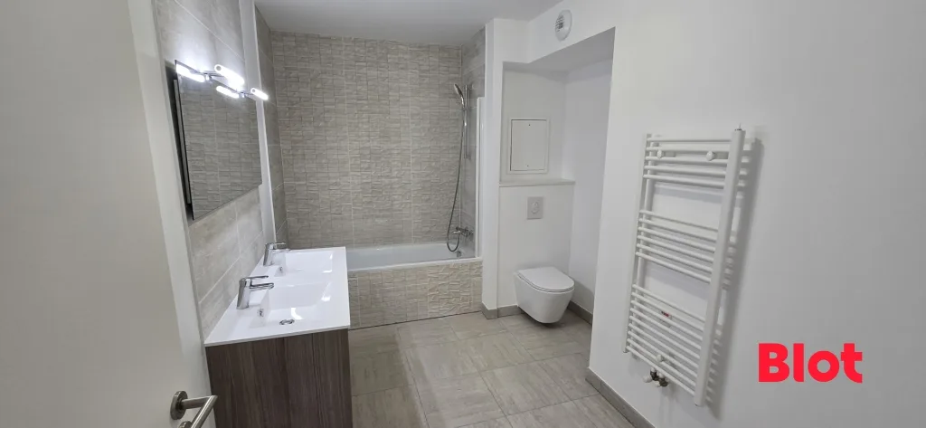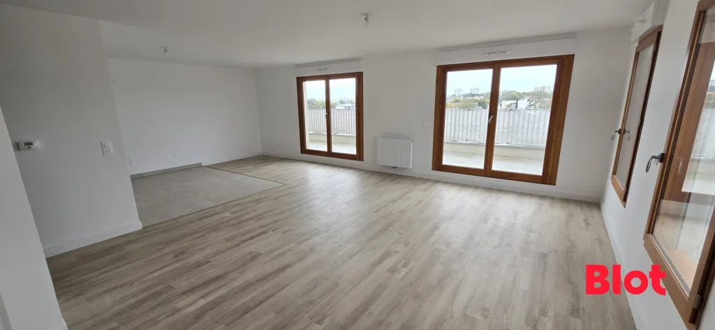 A vendre chez Blot Immobilier, Lorient, quartier Bodélio, dans une résidence neuve, un appartement de type 4 offrant : Une entrée avec placard et dégagement, salon séjour avec cuisine ouverte donnant sur terrasse, 3 chambres dont une avec balcon et une avec salle d'eau, salle de bains avec wc, et un wc séparés.