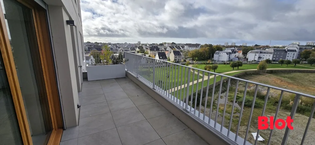 A vendre chez Blot Immobilier, Lorient, quartier Bodélio, dans une résidence neuve, un appartement de type 4 offrant : Une entrée, séjour avec cuisine ouverte donnant sur terrasse, dégagement avec placard, 3 chambres dont 2 donnant sur balcon, et une avec salle d'eau et placard, salle de bains, wc séparés.