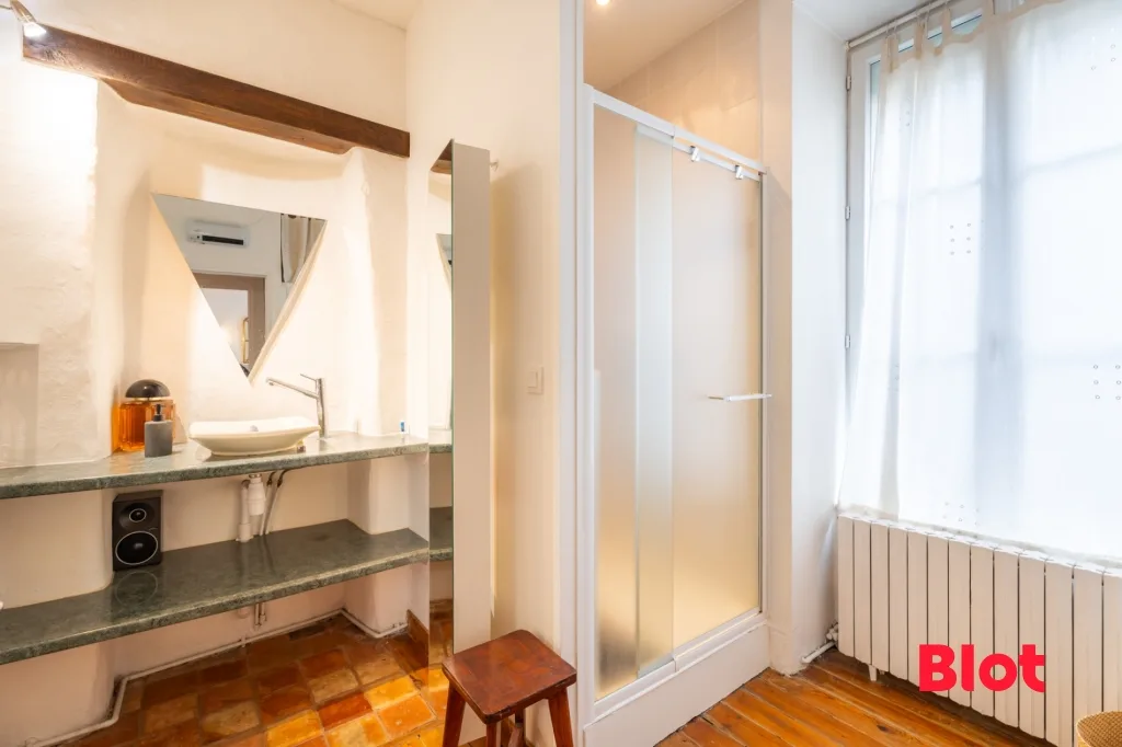 Niché dans un immeuble ancien, cet appartement de 70 m² séduit immédiatement par ses pierres apparentes, son parquet chaleureux et son ambiance authentique.