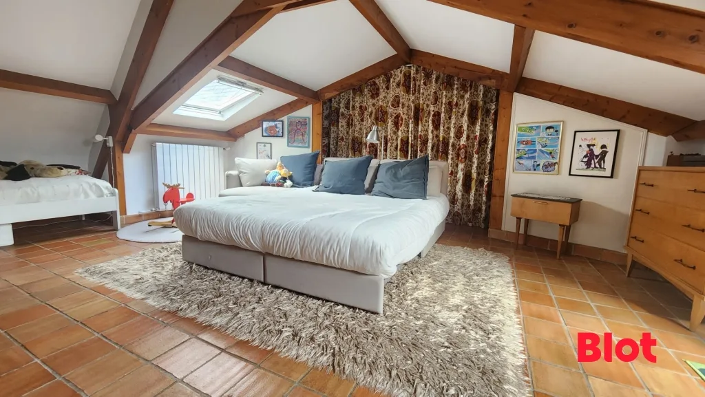 L'étage se compose d'un grand palier qui dessert deux chambres généreuses et une seconde salle d'eau.