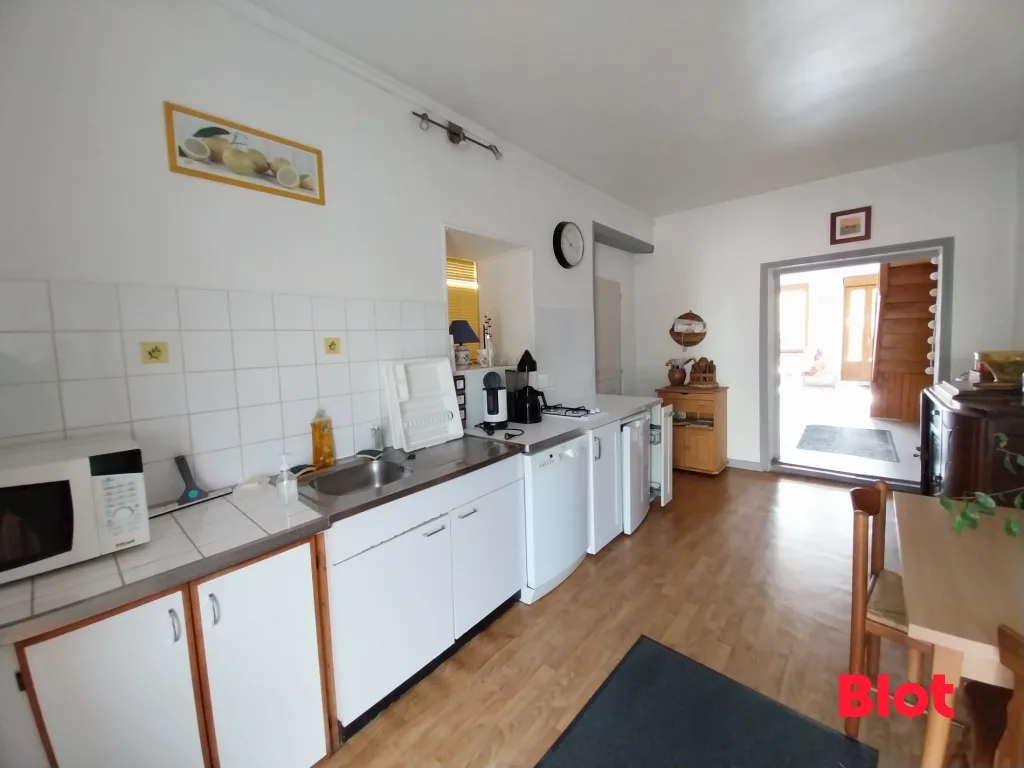 Idéalement située au cœur du bourg, cette propriété de charme se distingue par son ensemble immobilier composé de deux habitations indépendantes, alliant cachet, volumes généreux et fort potentiel d'exploitation.
