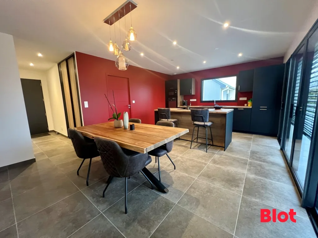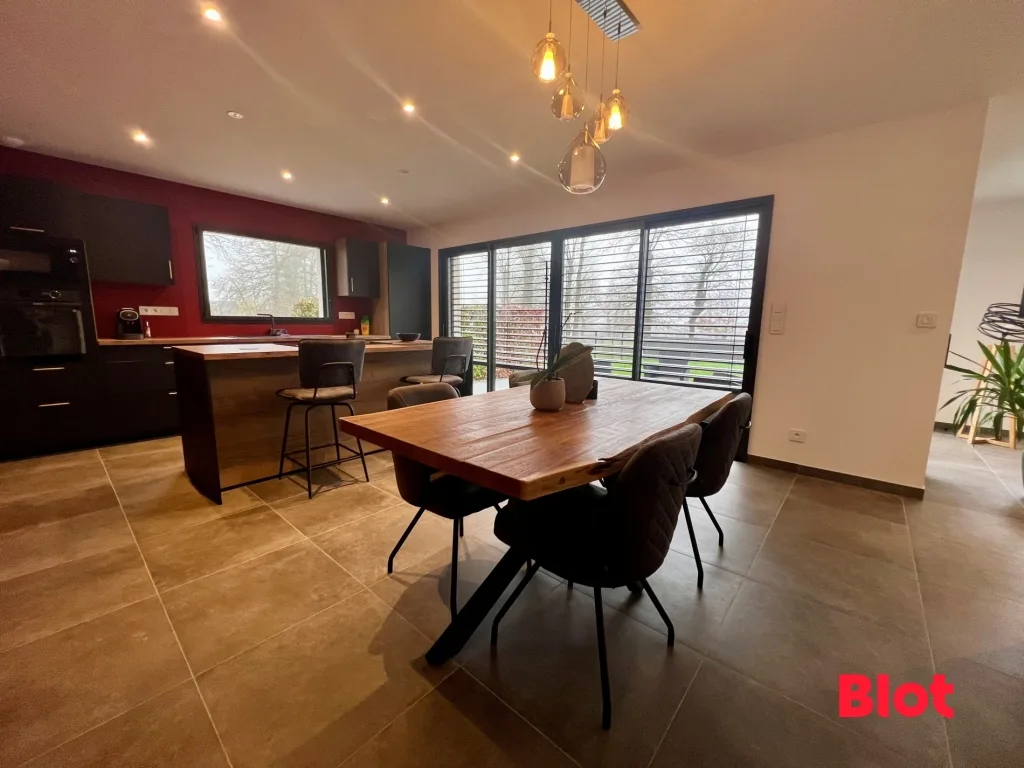 Le cœur de la maison s'articule autour d'un vaste espace de vie, baigné de lumière, comprenant une magnifique cuisine entièrement équipée et aménagée, aux finitions soignées, ouverte sur un séjour chaleureux et convivial. Un espace pensé pour le bien-être et le partage.