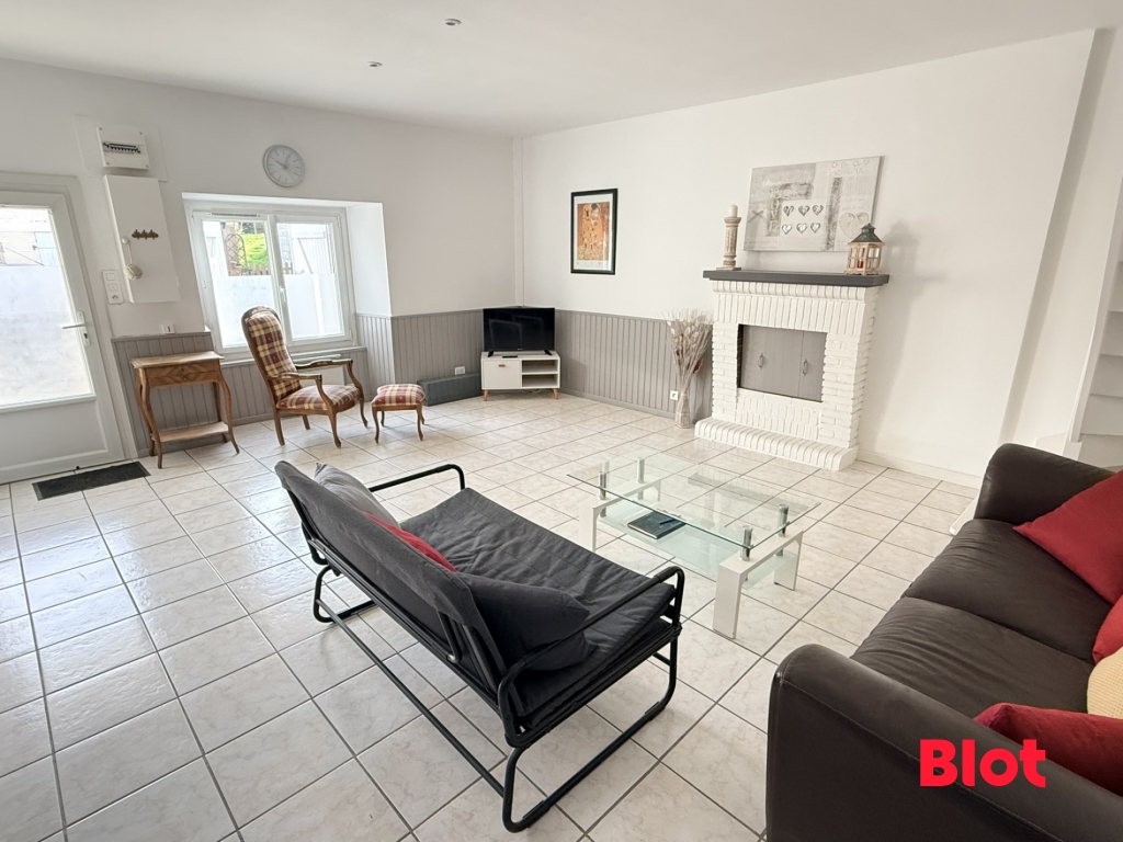 Au rez-de-chaussée, découvrez une belle pièce de vie baignée de lumière grâce à ses larges ouvertures, avec cheminée chaleureuse pour les soirées d'hiver. La cuisine s'ouvre directement sur la terrasse, parfaite pour les repas en plein air, et une salle d'eau avec WC complète l'ensemble.