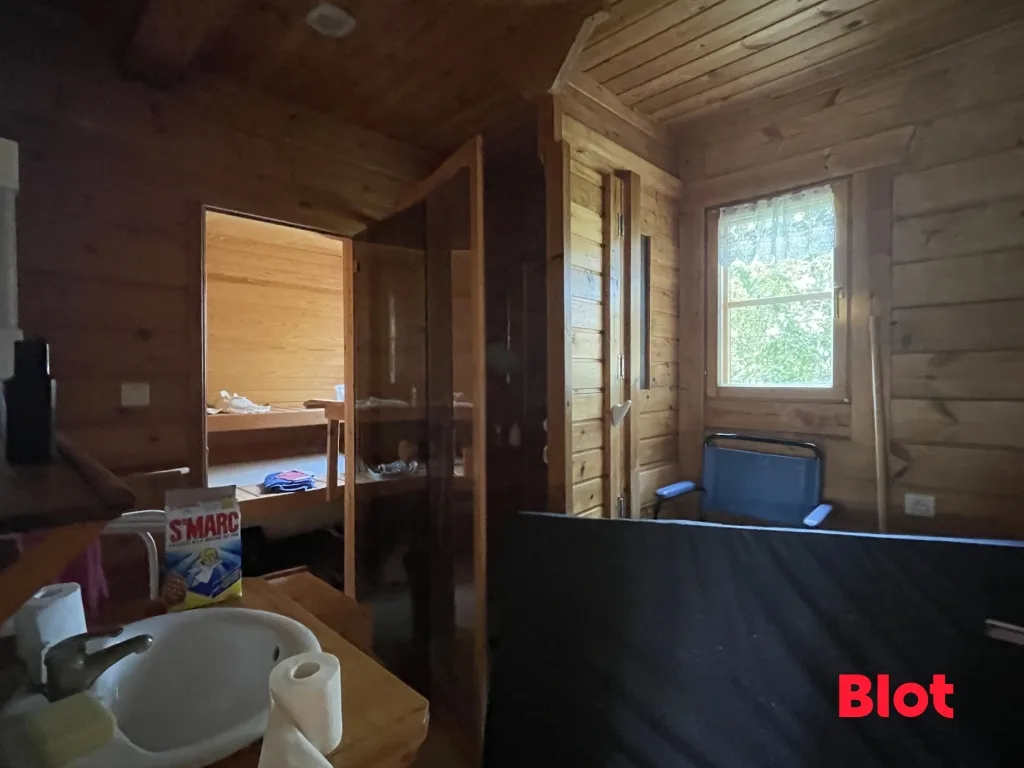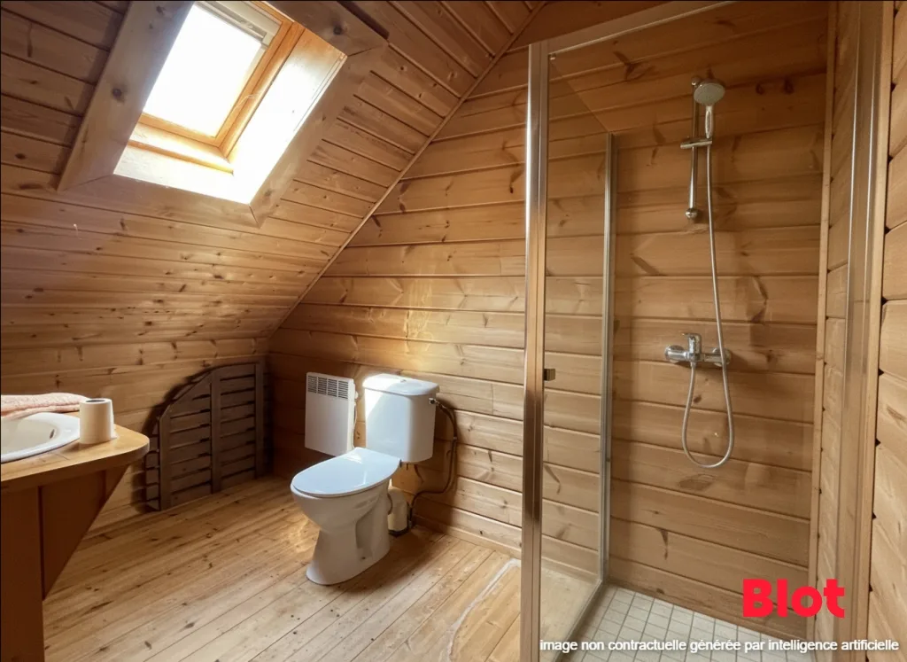 Au rez-de-chaussée, vous apprécierez une agréable pièce de vie, une chambre, une salle d'eau équipée d'un sauna ainsi que des WC.