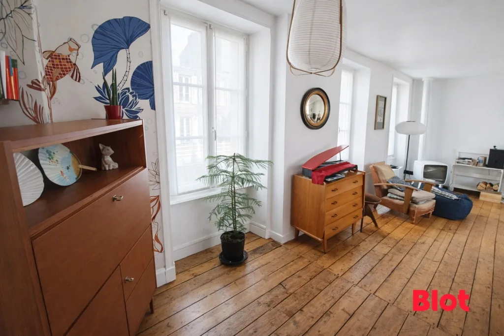 Derrière sa façade de caractère, la maison dévoile un beau séjour baigné de lumière, aux volumes agréables, idéal pour les moments de convivialité.
