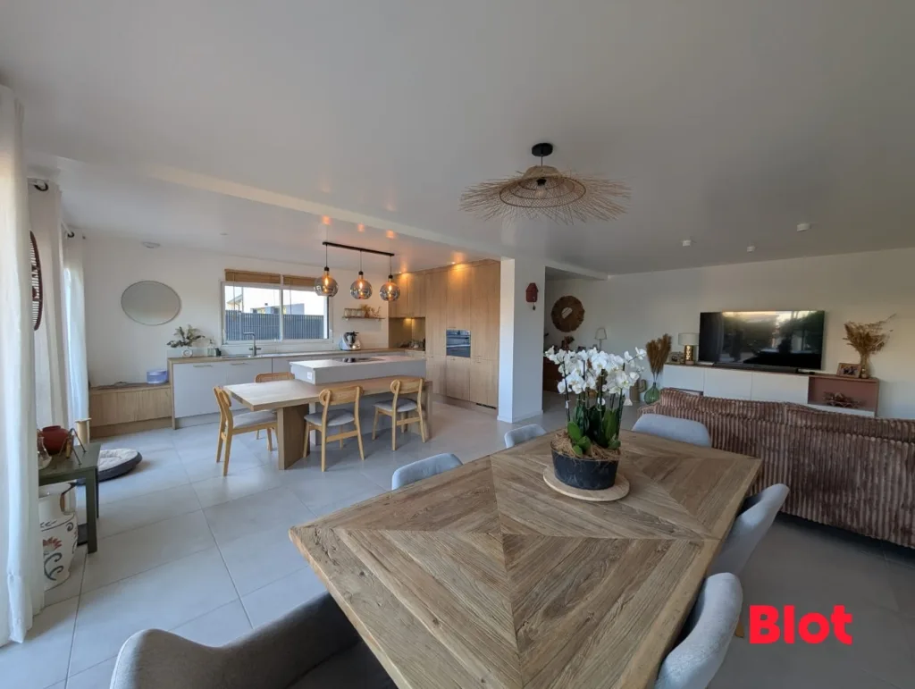 - Une spacieuse pièce de vie avec cuisine ouverte,