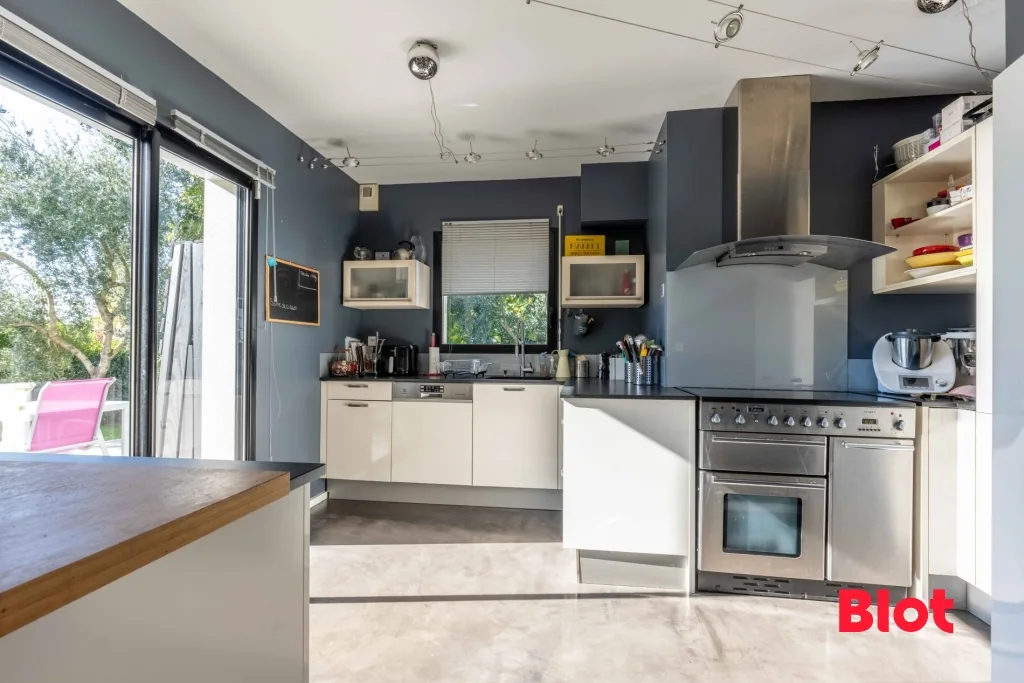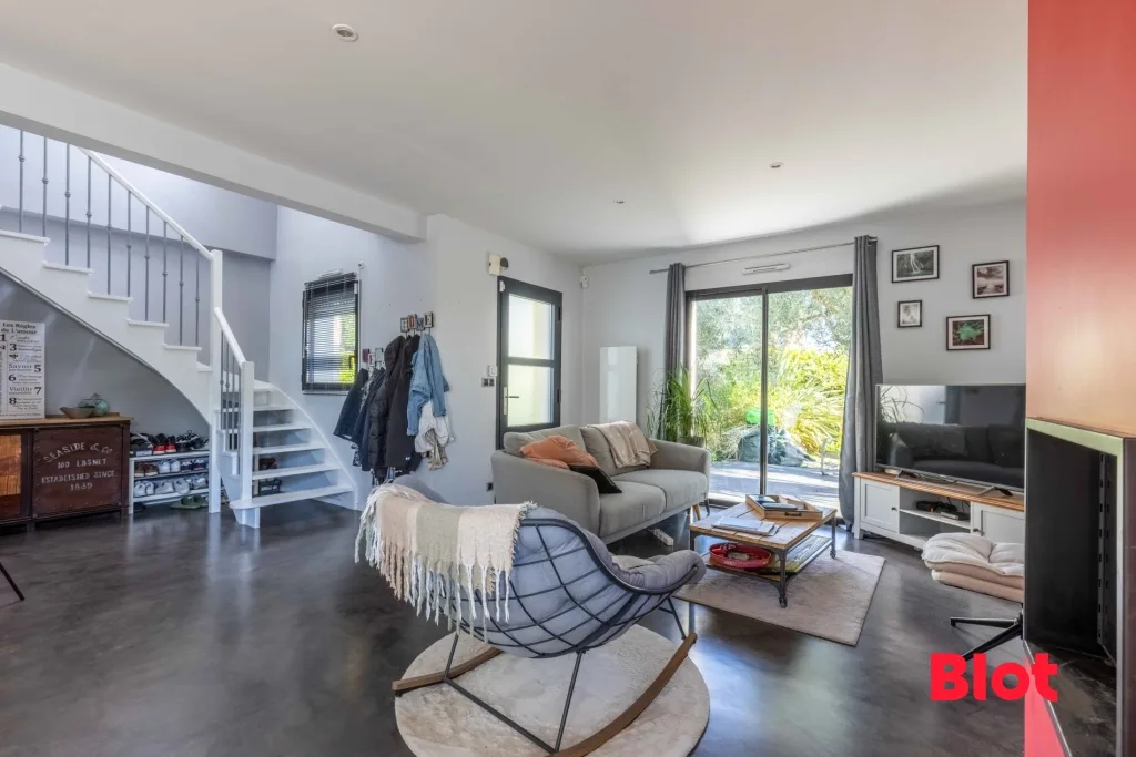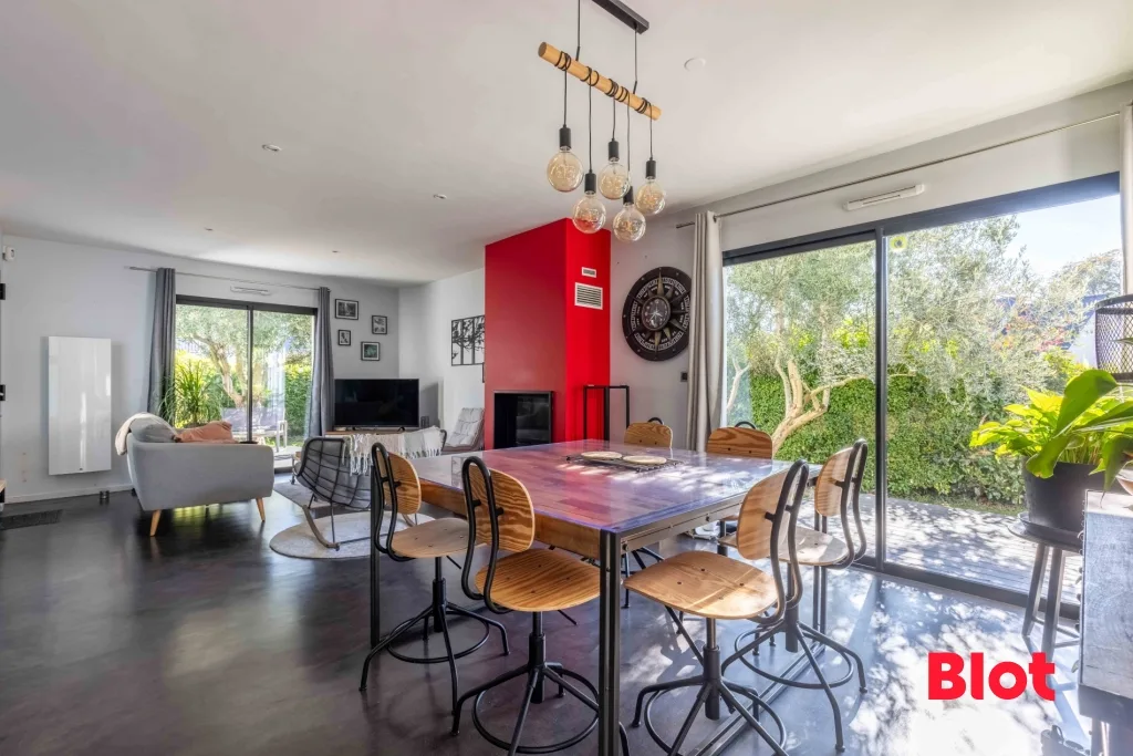 Dès l'entrée, vous serez séduit par un vaste salon-séjour lumineux avec cuisine ouverte, exposé plein sud-ouest. Ce bel espace de vie de près de 50 m², sans aucun vis-à-vis, donne directement sur le jardin et promet de beaux moments de convivialité au quotidien.