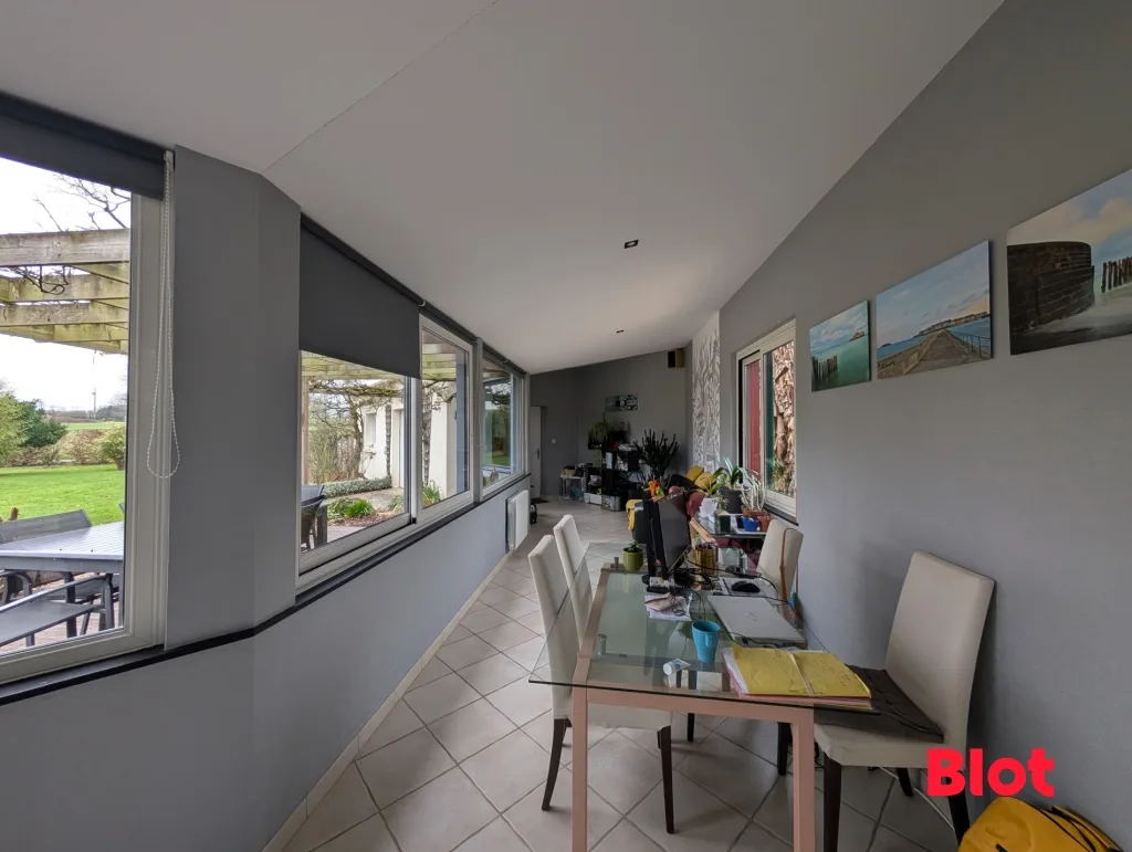Elle offre de beaux volumes, avec 2 chambres confortables, un bureau idéal pour le télétravail, ainsi qu'une grande véranda chauffée, véritable pièce de vie supplémentaire baignée de lumière et ouverte sur le jardin.