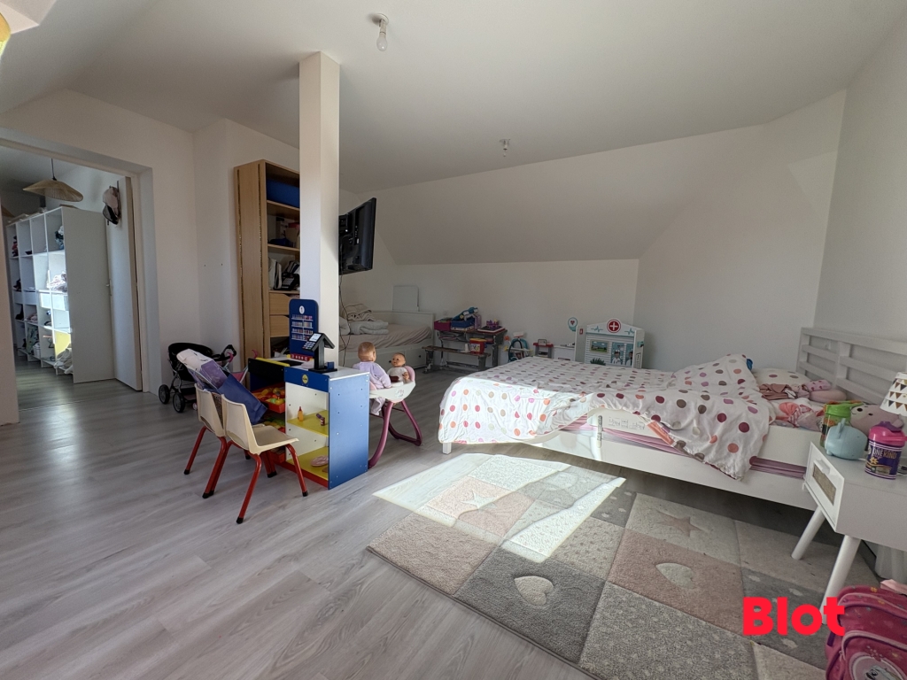 A l'étage vous profiterez d'une mezzanine distribuant 3 chambres, dont une de plus de 21 m2 et une salle de bain avec un WC.