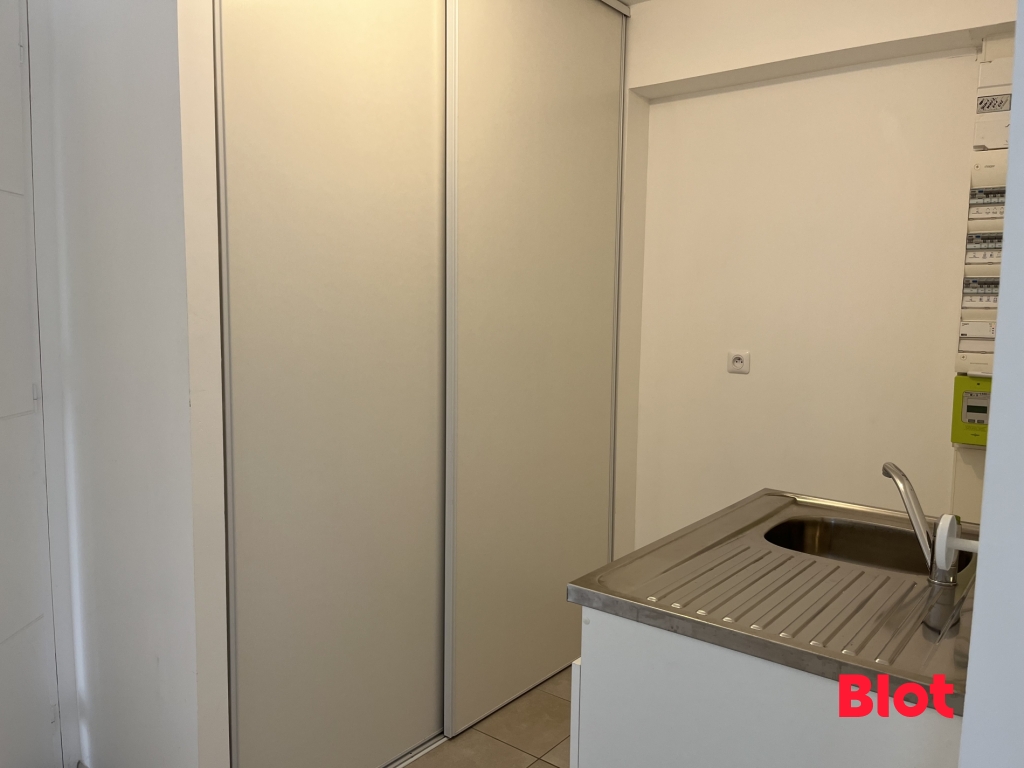 L'entrée dessert un vaste et lumineux salon-séjour donnant sur la terrasse, une cuisine ouverte aménagée et équipée, une chambre avec salle d'eau privative, une buanderie, un WC.