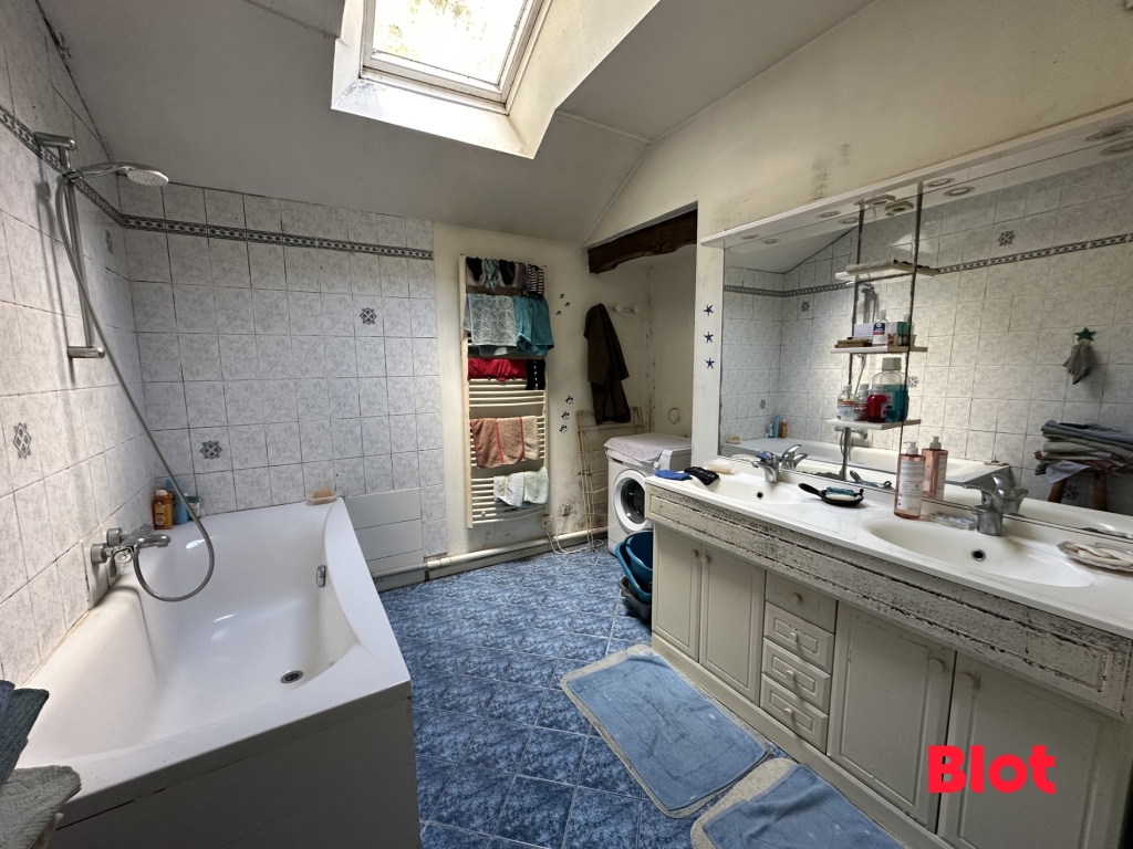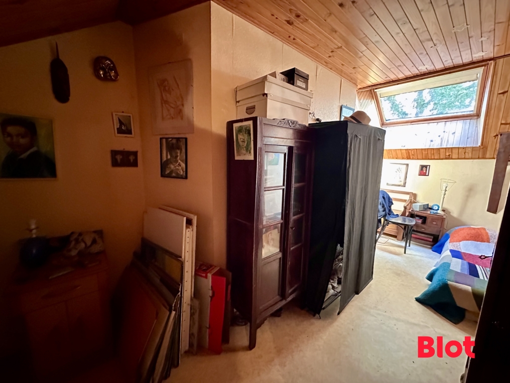 À l'étage, le palier dessert deux chambres ainsi qu'un grenier aménageable d'environ 22 m², offrant un potentiel d'évolution supplémentaire.