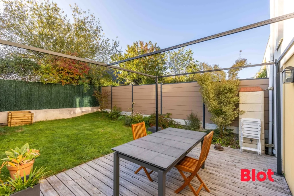 Vous bénéficiez également d'un garage et d'un jardin exposé sud avec un belle terrasse bois et un abris de jardin.