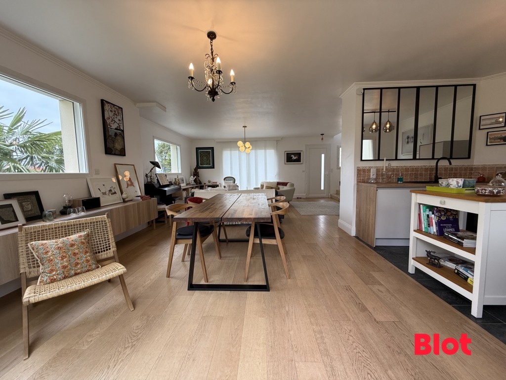 Édifiée sur un terrain clos et arboré de 630 m², elle séduit par ses volumes généreux, sa luminosité et ses équipements modernes.