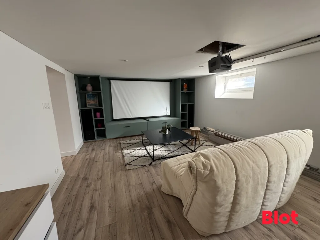 - Au rez-de-chaussée : un grand sous-sol permettant de nombreuses possibilités d'aménagement : espace de stockage, atelier ou salle de jeux… Ainsi qu'un espace buanderie.