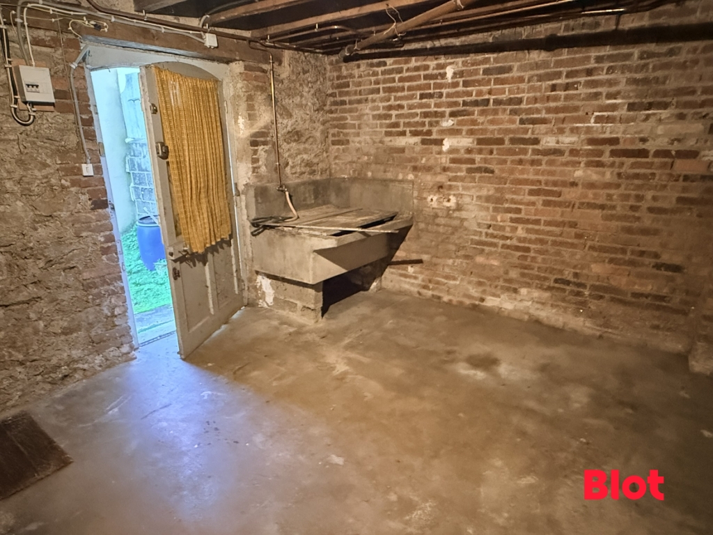 À l'étage, vous trouverez deux chambres avec cheminées, ainsi qu'une salle de bains avec WC. En complément, un sous-sol complet avec deux accès offre de nombreuses possibilités d'aménagement ou de stockage, avec un accès direct à un agréable jardinet.