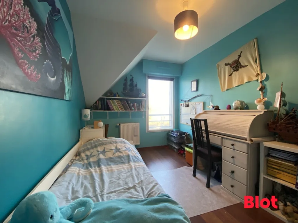 À l'étage, un palier dessert trois chambres, dont une avec un grand dressing, offrant calme et luminosité. Vous y trouverez également une salle de bain et un WC séparé.