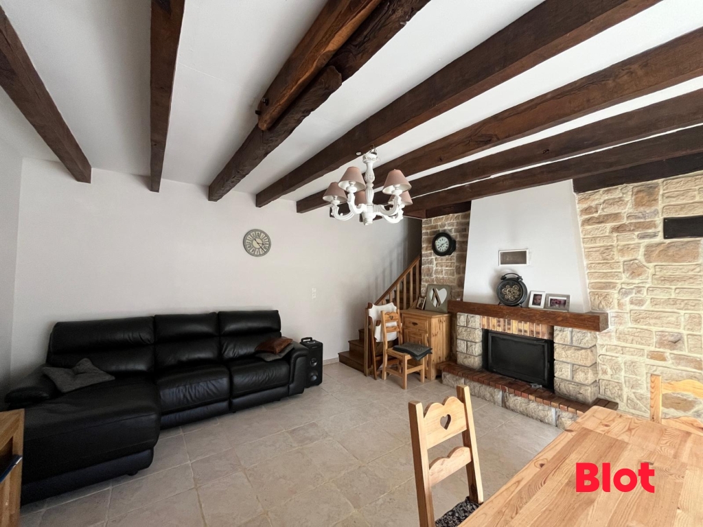Un vaste salon / séjour avec cheminée, parfait pour vos soirées cocooning