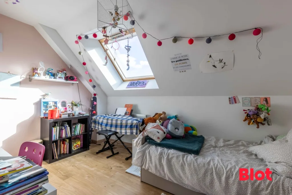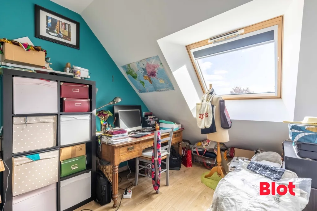 A l'étage vous profiterez de trois chambres, un bureau et une salle de bain avec WC.