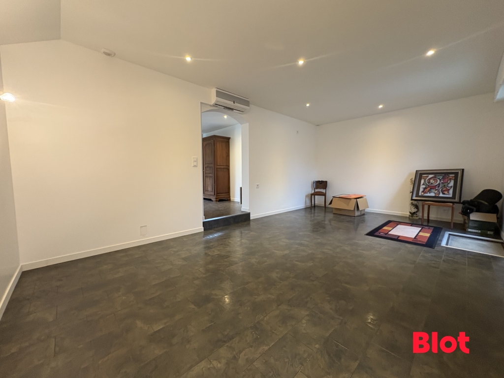 Elle se compose au RDC d'une entrée avec placard, un WC indépendant, une grande pièce d'environ 30 m² avec accès direct sur la rue, idéale pour une suite parentale, un espace bureau ou un local commercial.