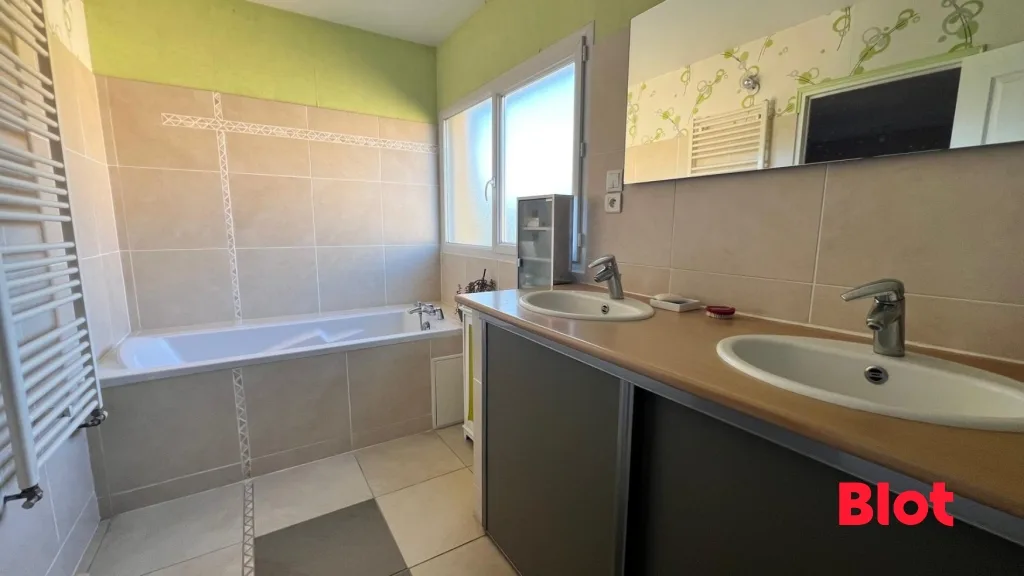 À l'étage, un dégagement vous guide vers quatre chambres généreuses, idéales pour chaque membre de la famille. Une salle de bains bien équipée et un WC supplémentaire assurent une commodité optimale.