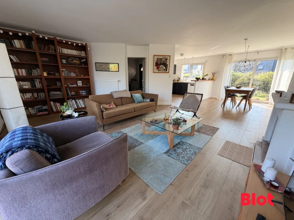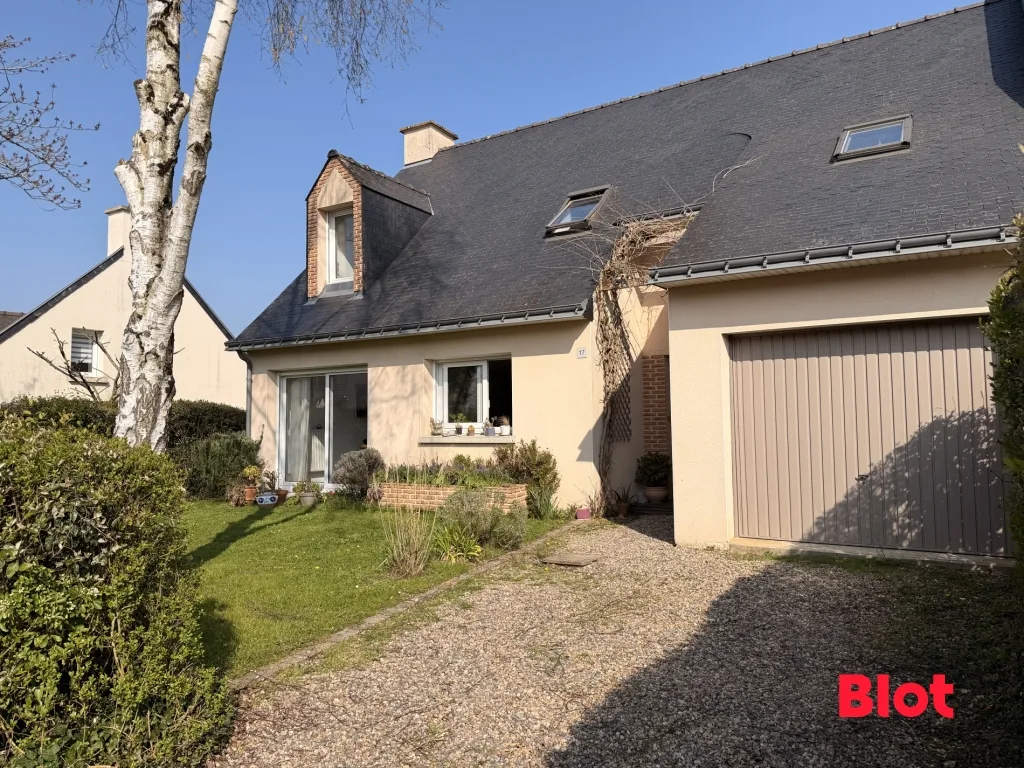 A VENDRE chez BLOT Immobilier à LE RHEU (RENNES METROPOLE) dans le centre-ville, Jolie maison construite en 1995, offrant environ 129 m² habitables sur 508m2 de terrain, comprenant au rez-de-chaussée une entrée avec rangement, une belle pièce de vie lumineuse de 52 m² sur parquet massif et exposée sud-ouest avec cheminée et cuisine ouverte aménagée et équipée, une salle d'eau avec WC, une buanderie et un garage. A l'étage, un dégagement dessert quatre chambres, un espace dressing, une salle de bains et des WC séparés.