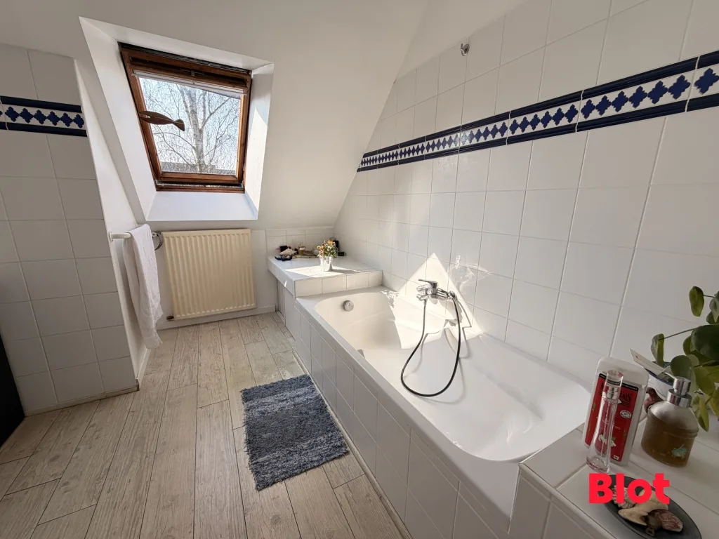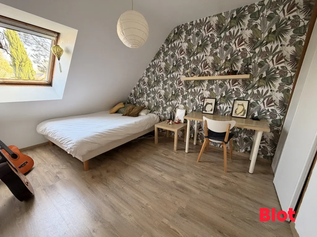 La maison dispose également d'un abri de jardin, d'une toiture en ardoises naturelles récemment nettoyée, de fenêtres en PVC double vitrage avec volets roulants, d'un chauffage au gaz de ville avec chaudière à condensation remplacée en 2025.