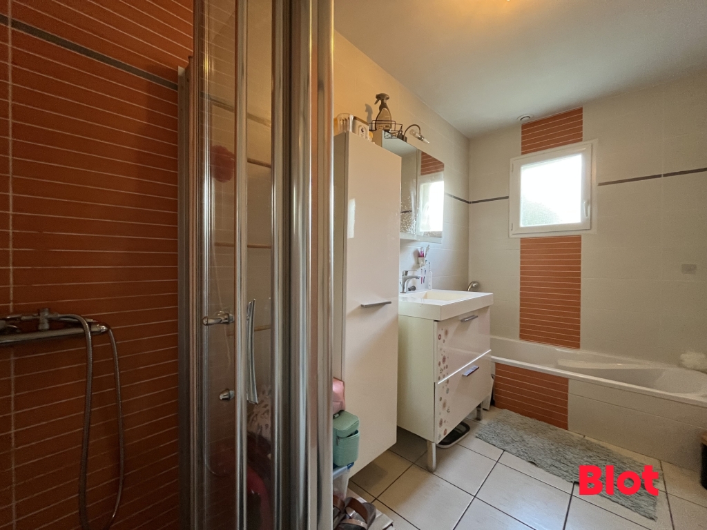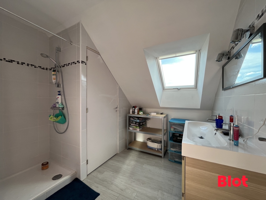 À l'étage, l'espace se poursuit avec deux belles chambres d'environ 15 m² chacune, offrant de beaux volumes et beaucoup de luminosité. Une salle de douche moderne vient compléter cet étage, offrant un confort optimal pour toute la famille.