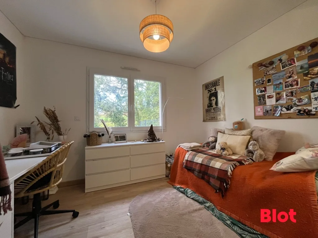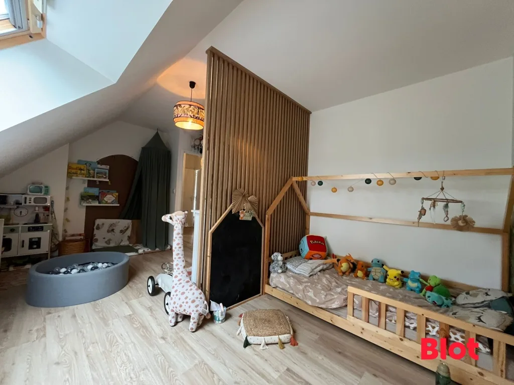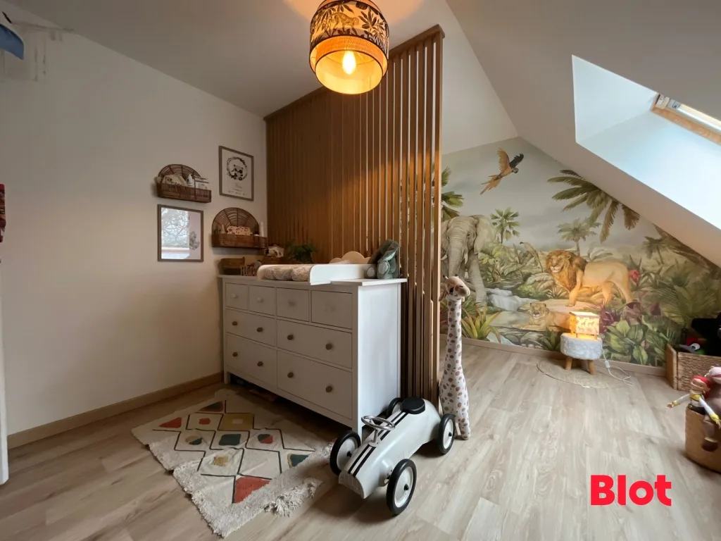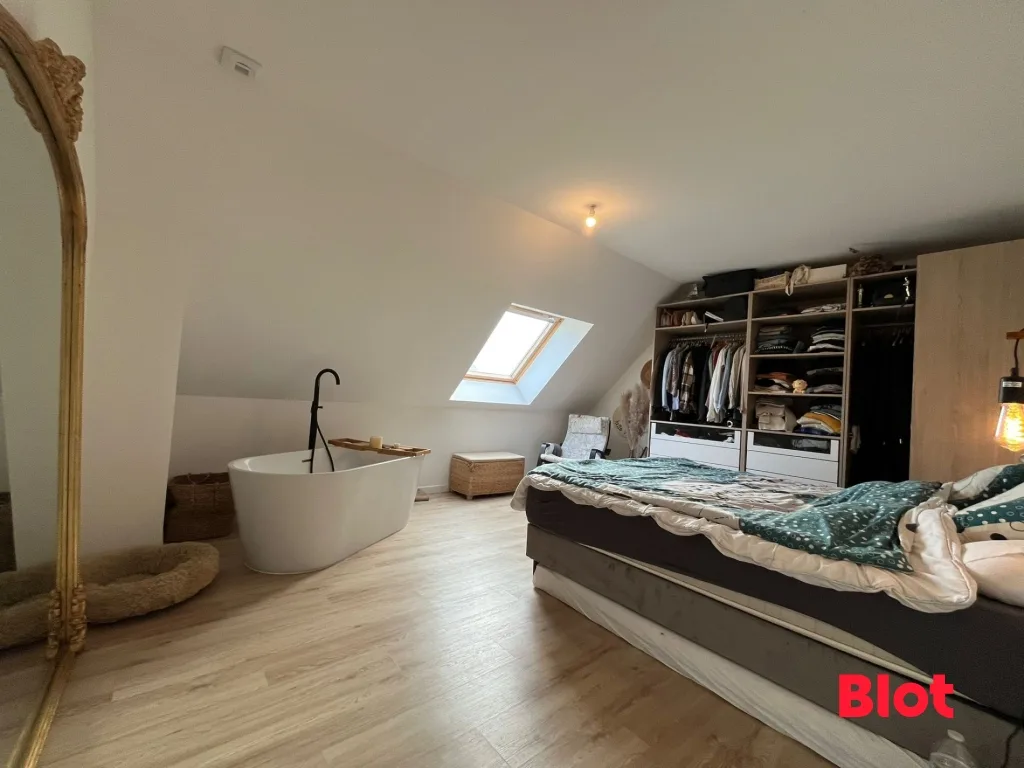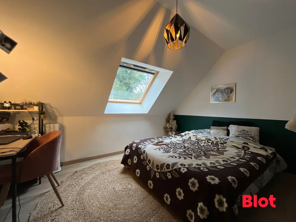 Au rez-de-chaussée, une chambre de plain-pied avec salle de douche apporte un confort appréciable au quotidien. À l'étage, vous trouverez une suite parentale avec baignoire, ainsi que deux chambres supplémentaires avec placards, parfaitement adaptées à une famille ou à un espace bureau.