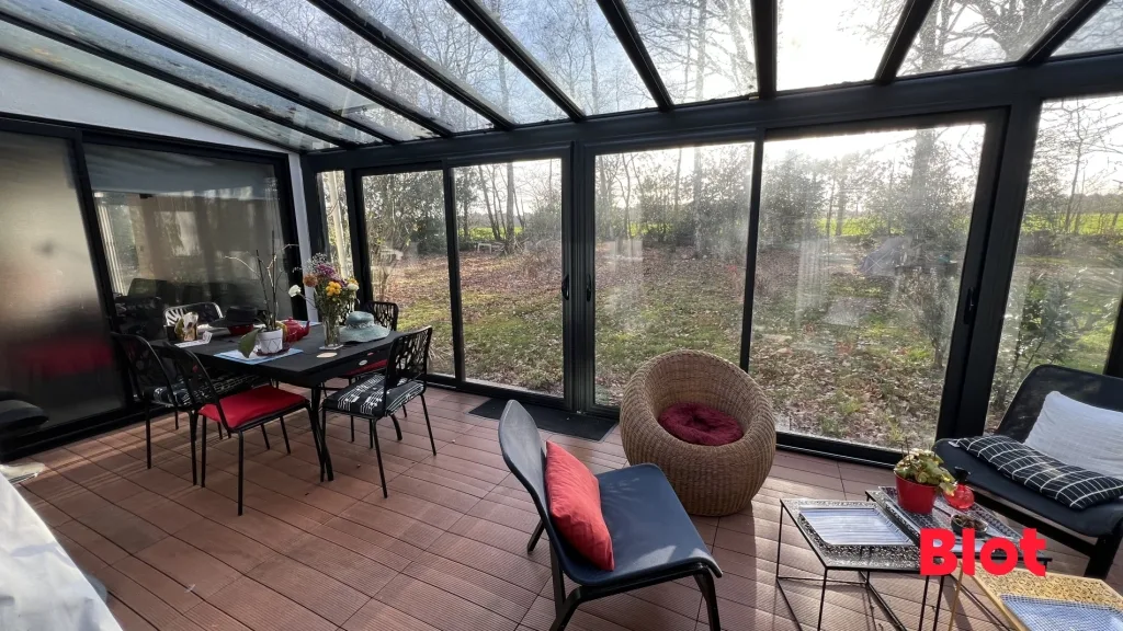 À l'extérieur, le terrain arboré, sans aucun vis-à-vis, constitue un véritable havre de paix pour les amoureux de nature, tout en restant à proximité immédiate des commerces, écoles et services.