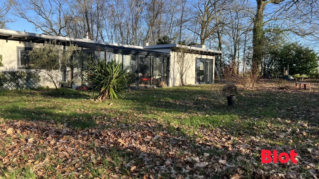 Entièrement plain-pied, vous serez séduits par son architecture singulière et sa luminosité grâce à ses larges ouvertures tournées vers la nature. Implantée sur un terrain sans vis-à-vis de 3700 m², entourée de bois, elle garantit calme, intimité et sérénité au quotidien.