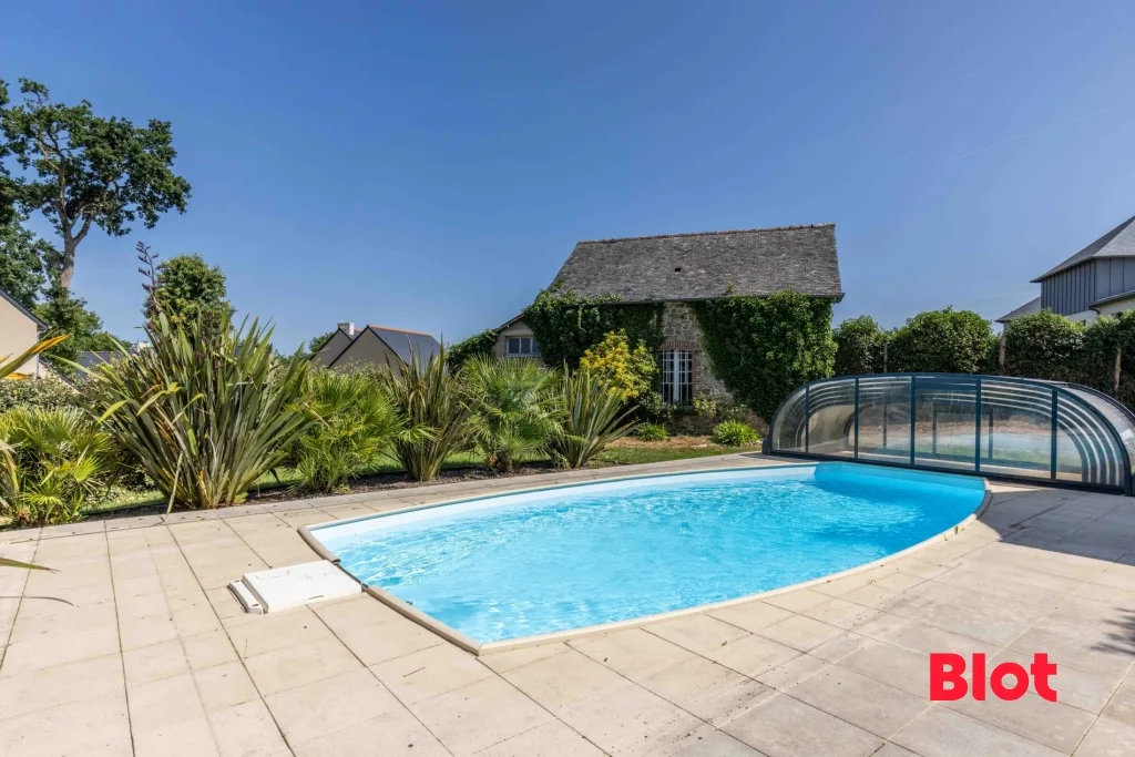 À l'extérieur, vous profiterez d'une vaste terrasse exposée plein sud, donnant sur une piscine couverte et chauffée, accompagnée d'un espace attenant aménagé (idéal pour du rangement, un coin détente ou un futur aménagement selon vos envies).