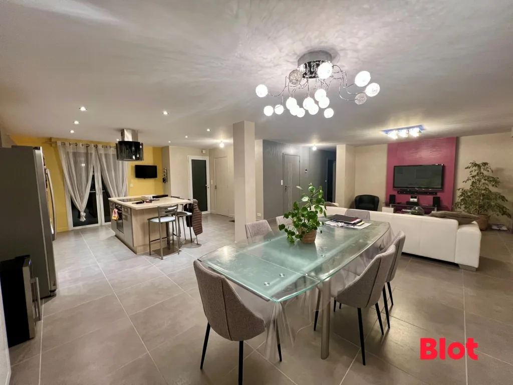Édifiée sur un sous-sol complet, cette propriété séduit immédiatement par ses volumes et la qualité de ses prestations. Vous profiterez d'une pièce de vie exceptionnelle de plus de 60 m², baignée de lumière, offrant un espace convivial idéal pour recevoir famille et amis.