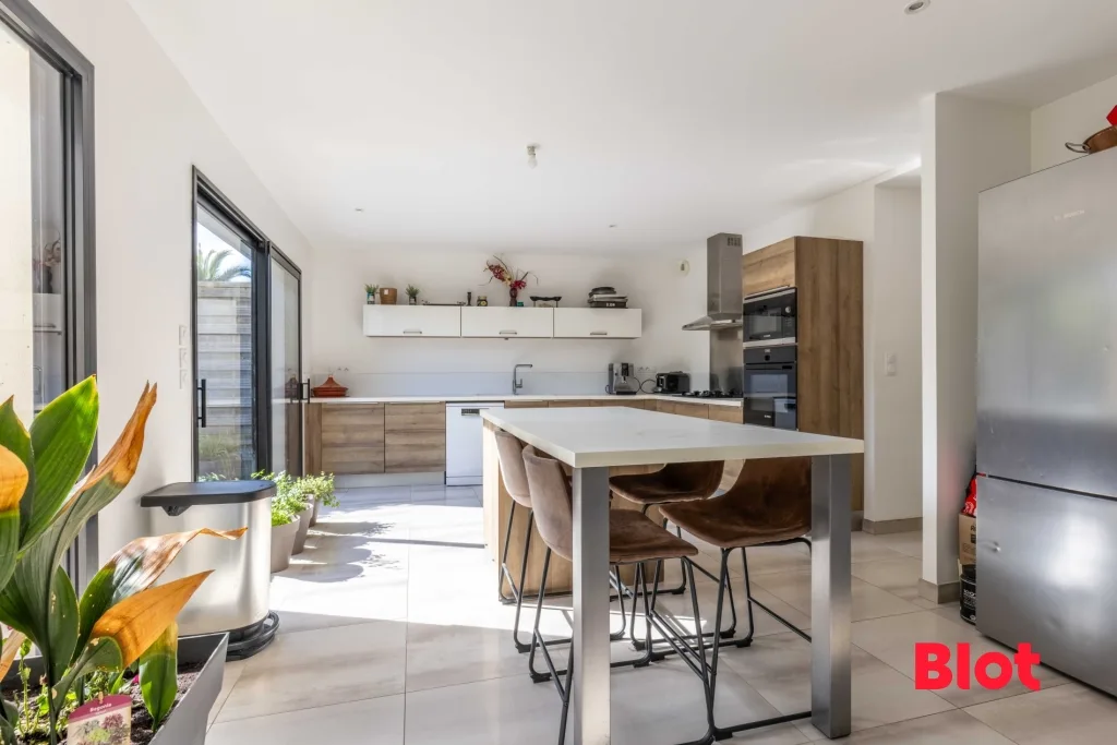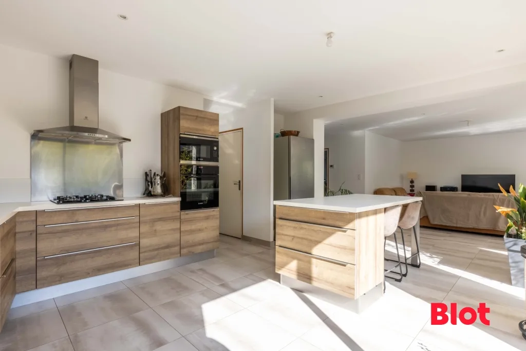 Dès l'entrée, vous découvrirez une vaste pièce de vie de 65 m², baignée de lumière naturelle, offrant un espace convivial idéal pour recevoir et profiter de moments en famille. La cuisine ouverte sur le séjour se prolonge sur une arrière-cuisine/buanderie très fonctionnelle.