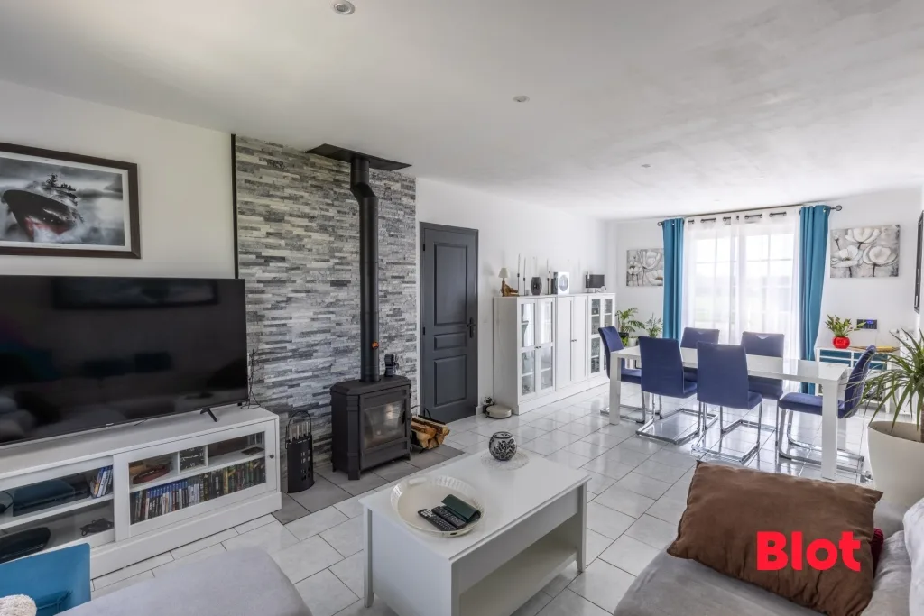 Salon/séjour chaleureux avec poêle à bois