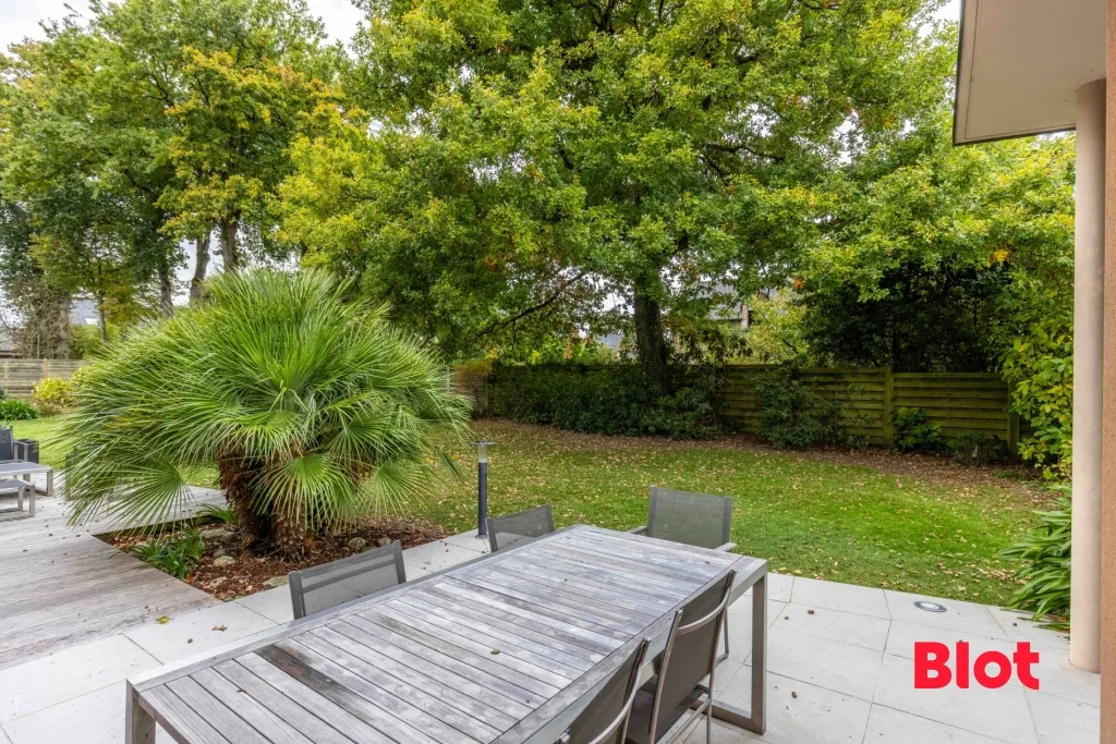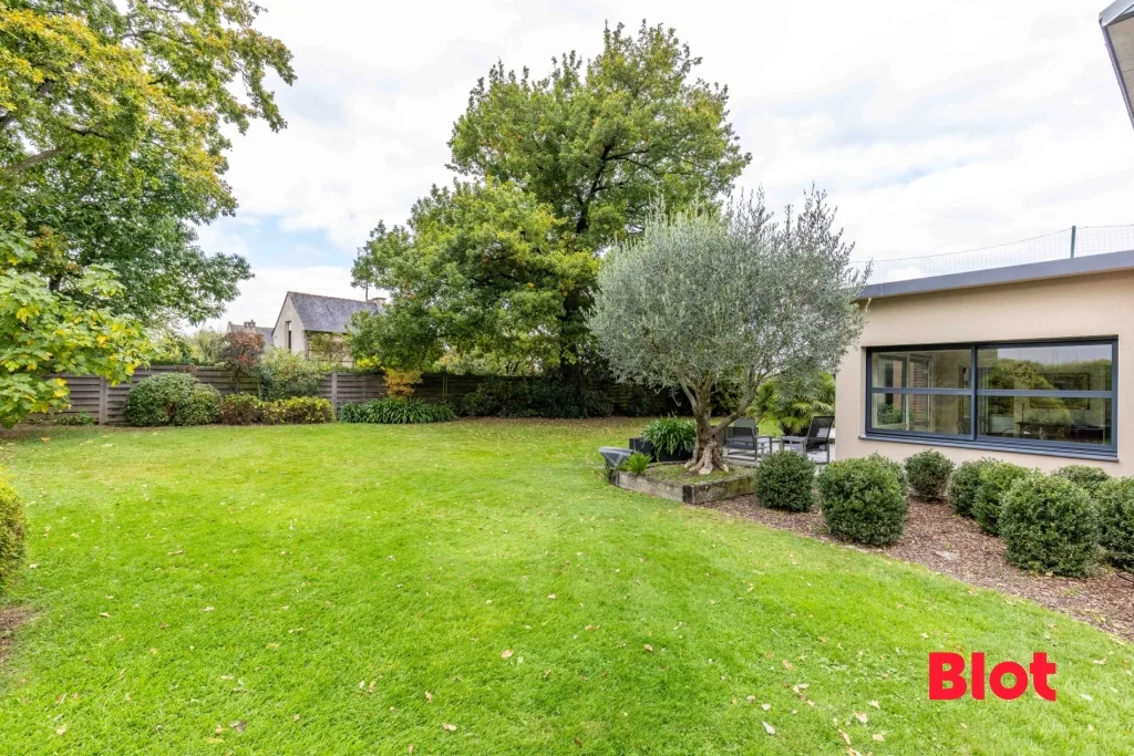 le tout sur un terrain de 1220 m² exposé plein sud sans aucun vis-à-vis avec une petite dépendance pour le matériel de jardinage. Un art de vivre alliant , confort et élégance dans l'une des communes les plus recherchées de la métropole rennaise.