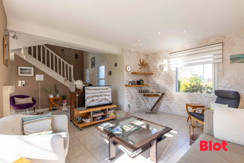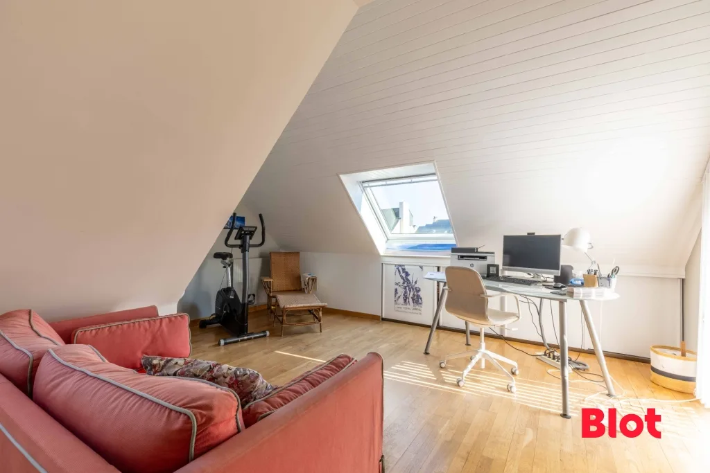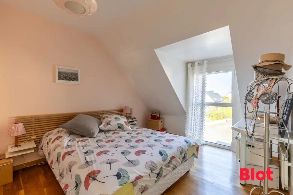 A l'étage : une mezzanine de 17m² desservant 3 chambres avec placard, une salle de bains, un wc et un dressing. Très beau jardin avec terrasse sans vis à vis de 550m² environ. Emplacement prisé, rare sur Pacé.