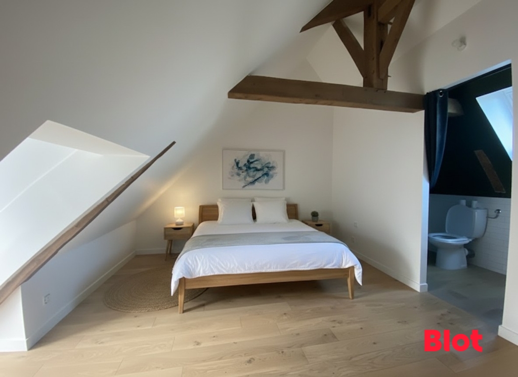 Au 1er étage : un palier dessert une chambre avec placard, une salle d'eau moderne et un deuxième WC.