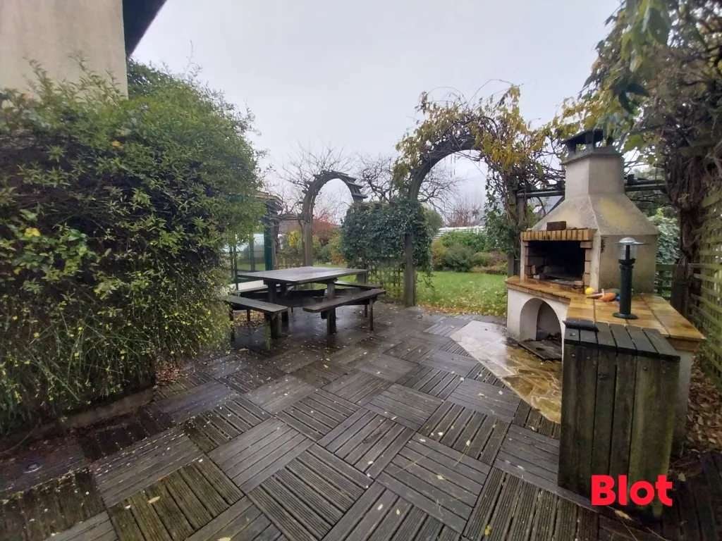 À l'extérieur, le terrain clos de 647 m², sans vis-à-vis, forme un écrin de verdure où l'on imagine aisément les jeux d'enfants, les soirées d'été ou le simple plaisir de se ressourcer.