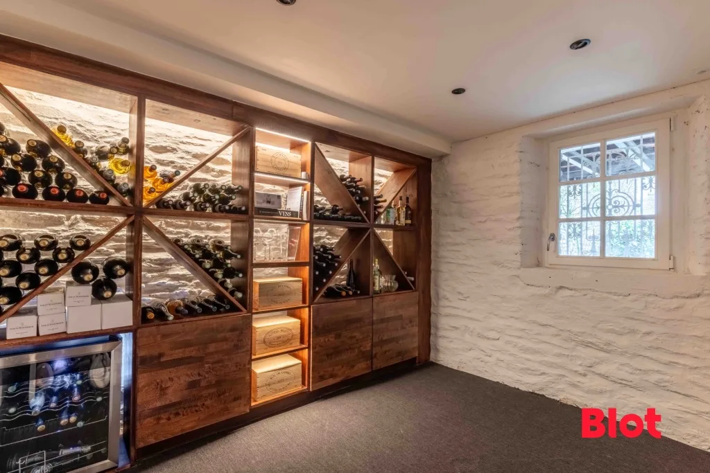 La maison dispose d'un garage, d'une buanderie et d'une cave à vin.
