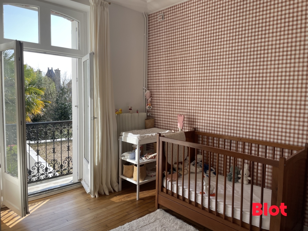 A quelques pas du parc du THABOR, de l'établissement Saint Vincent et des meilleurs commerces de quartier, cette remarquable maison de Maître rénovée en 2024 déploie tout le charme des belles demeures familiales rennaises dans un environnement privilégié.