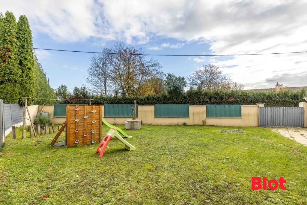 Située à proximité immédiate du bourg et accessible par une piste cyclable, cette maison de type longère offre un cadre de vie calme et pratique.