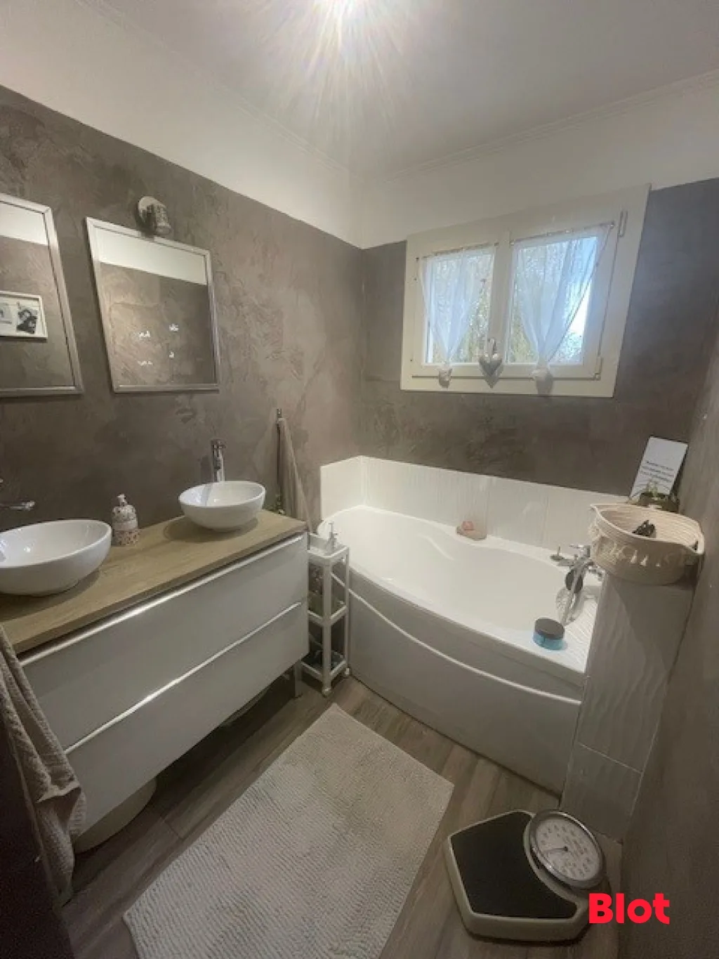 Dotée d'une terrasse exposée plein sud avec jardin clos et arboré, cette maison apporte tout le confort nécessaire à la vie d'un foyer et n'attend plus que vous vous y installiez.