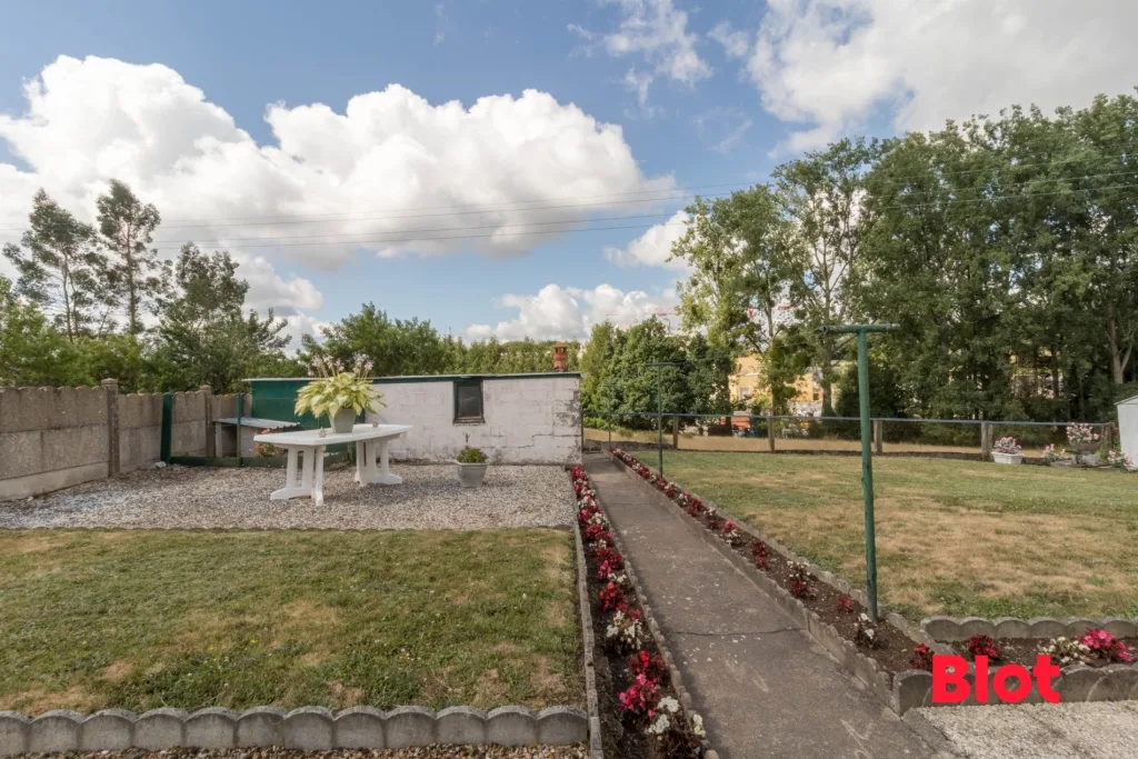 En extérieur, une terrasse, un jardin, petite dépendance.