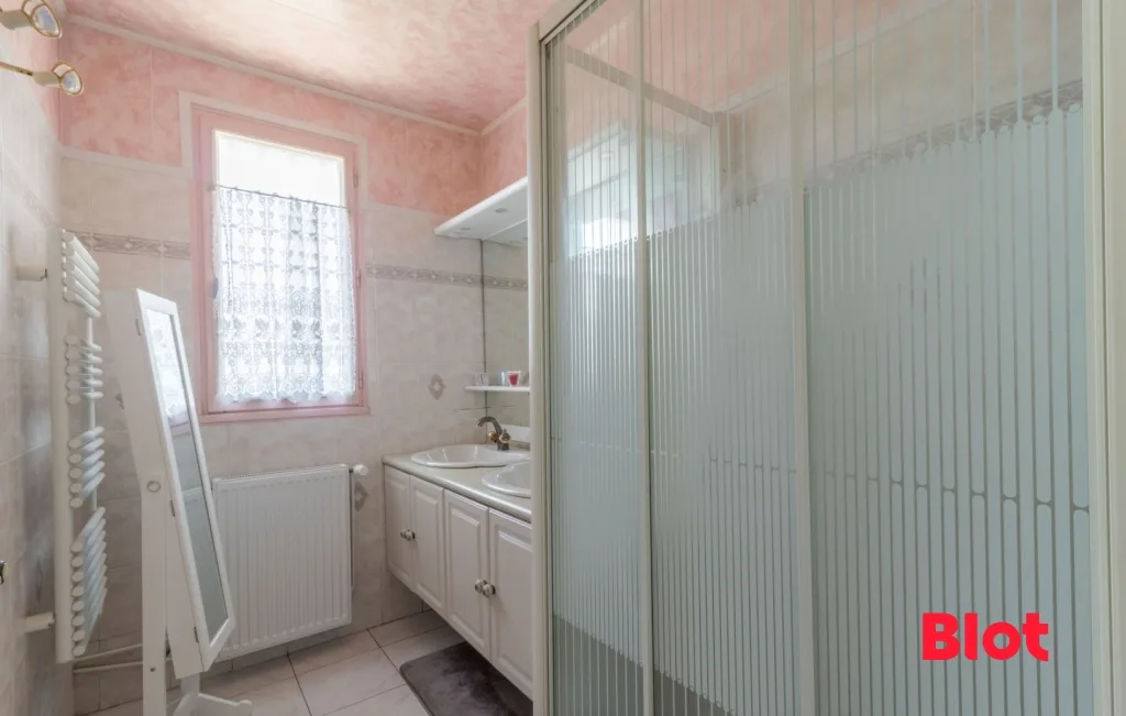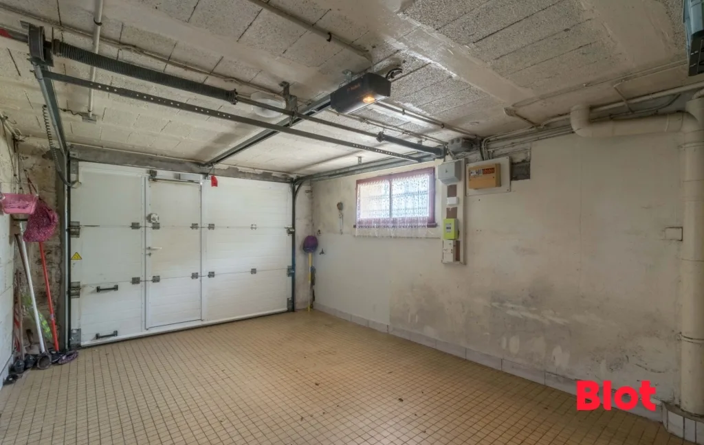 Le sous-sol est réparti en espace buanderie, chaufferie et garage carrelé, avec porte électrique.