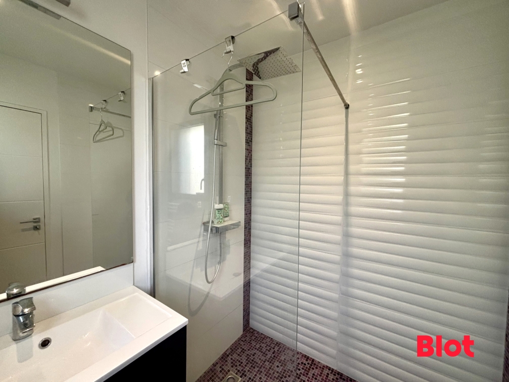 A l'étage, une mezzanine de 17 m² dessert trois chambres supplémentaires avec placards aménagés (13,5m²), une salle de bains avec baignoire et douche. WC indépendant.