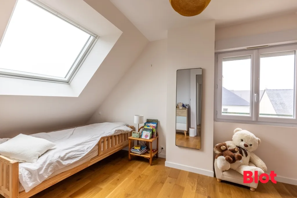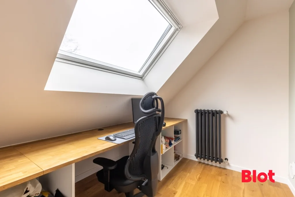 A l'étage, un bel espace nuit accueille deux chambres lumineuses, un bureau ainsi qu'une spacieuse salle de bains.
