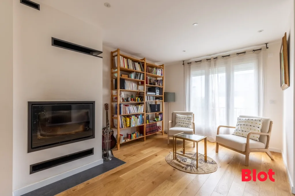 Dès l'entrée, l'atmosphère chaleureuse se révèle grâce au placard intégré et à l'agréable salon lecture niché près de la cheminée, parfait pour vos instants détente.