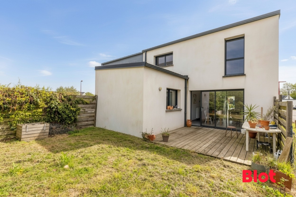 A VENDRE en EXCLUSIVITE BLOT Immobilier, à SAINT-GILLES (RENNES METROPOLE) élégante maison contemporaine 4 chambres de 2016 offrant 98 m² habitables sur un terrain de 180 m² exposé Ouest dans un environnement calme et familial avec espaces verts et aires de jeux à proximité immédiate.