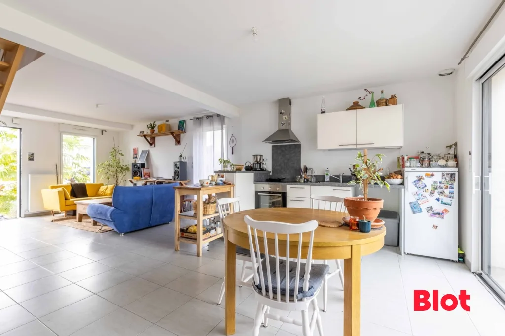 Dès l'entrée le ton est donné avec une lumineuse pièce de vie sublimée par une cuisine ouverte aménagée et équipée pensée pour conjuguer esthétisme et convivialité. Une chambre au rez-de-chaussée accompagnée de sa salle d'eau apporte un confort de vie idéal au quotidien.
